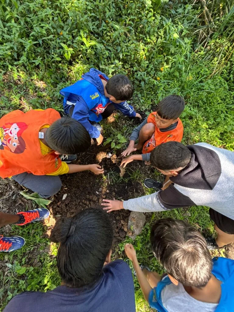 A programação incluiu também contação de histórias e uma conversa sobre o plantio, explicando a importância das árvores, os benefícios de cada espécie e os cuidados necessários para o seu crescimento. Os grupos participaram do plantio de mudas frutíferas, incluindo pitangas, ipês roxos e amarelos, laranjinhas, guabirobas e chal-chal, além de diversas hortaliças e temperos destinados à horta comunitária.